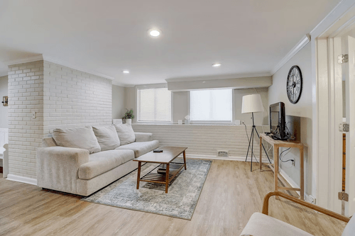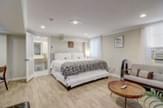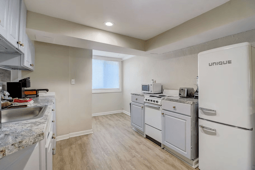 The Vinings (largest apartment) sleeps 2 and features a ground floor entrance (no steps), separate bedroom with a king bed and a ceramic tile bath with a shower. The kitchen has a mini-stove and full-size frig and is stocked with dishes, silverware, utensils, pots and pans, microwave, and coffee maker. Outside of the apartment is a covered brick patio with furniture.