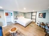 Buckhead features an impressive king canopy bedroom suite, high ceilings, an ornamental fireplace, designer chandelier, flat-screen cable TV and warm hardwood floors. The private bath has a gorgeous marble shower. A large slipper-shaped soaking tub sits in a corner of the room.